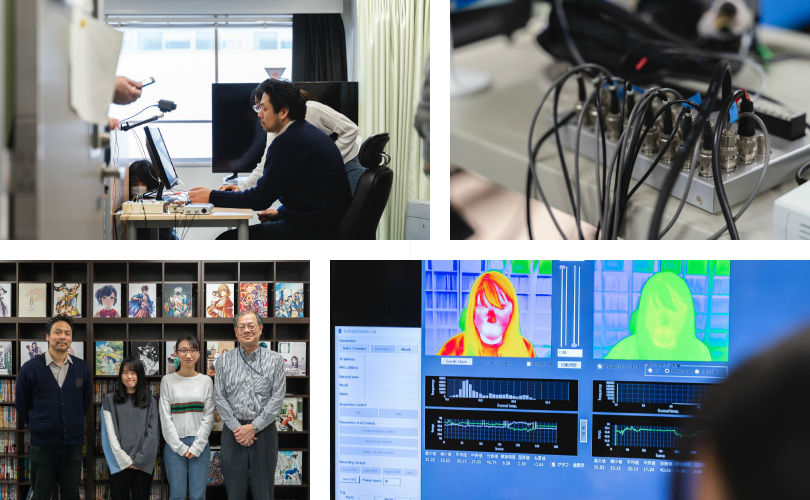 この仮説を出発点に、コアミックスは東京大学、電気通信大学とともに人間の感情(脳の活動)など生体反応の研究を進めています。